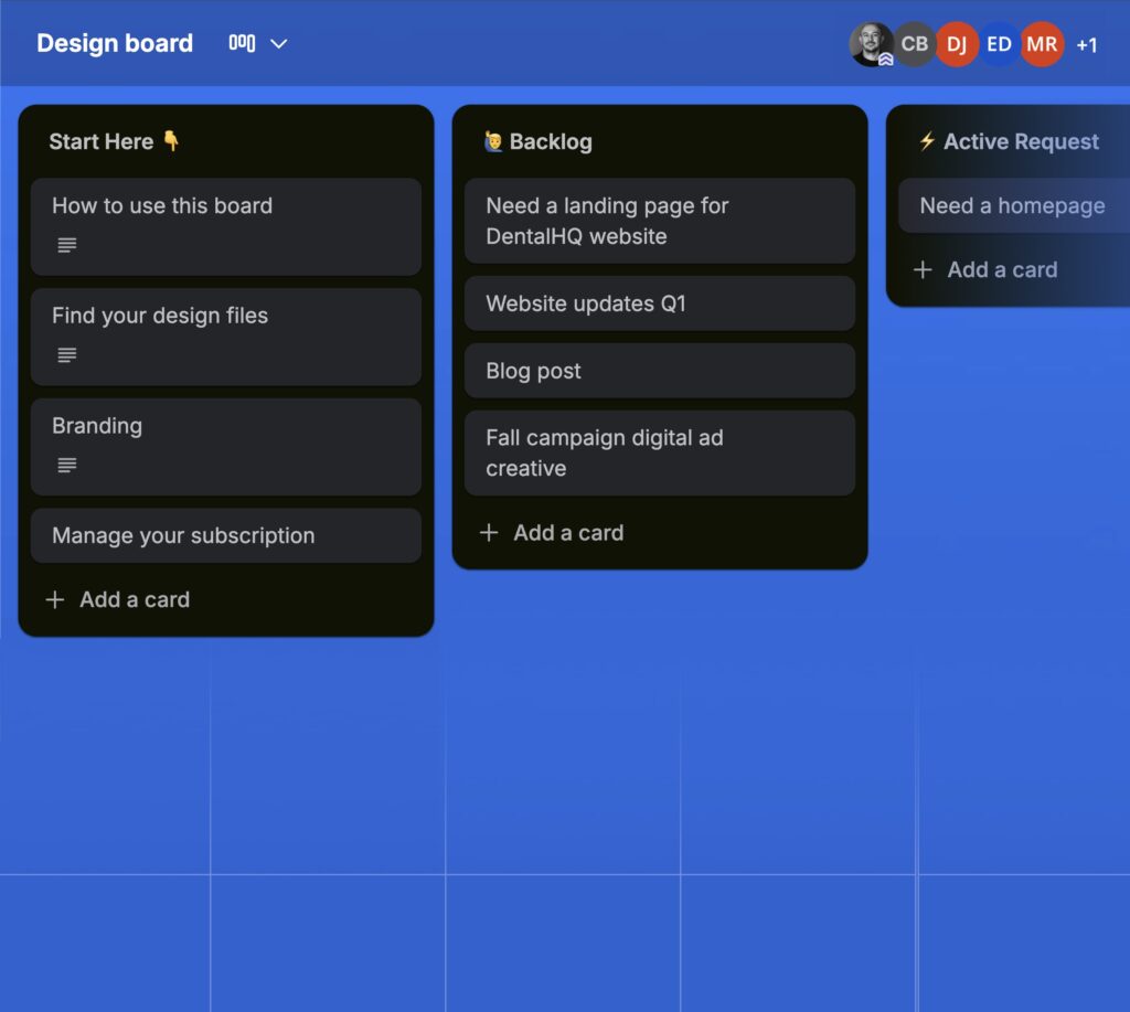 Add as many design requests to your board as you’d like.